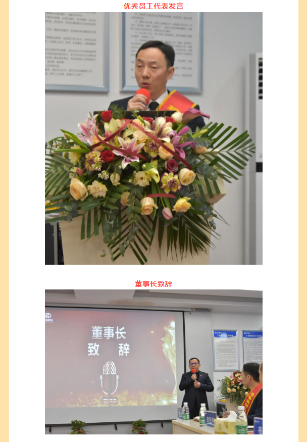 年會開始,董事長上臺致辭,共同回顧過去一年的辛勤與收獲,展望未來的機遇與挑戰。過去一年,全體員工團結協作,攻堅克難,取得了令人矚目的成績。董事長代表公司管理層,向每一位辛勤付出的員工表示衷心的感謝和崇高的敬意。希望未來,繼續發揚拼搏精神,共創更加輝煌的明天。最后,對全體員工表達了真摯的新年祝福。