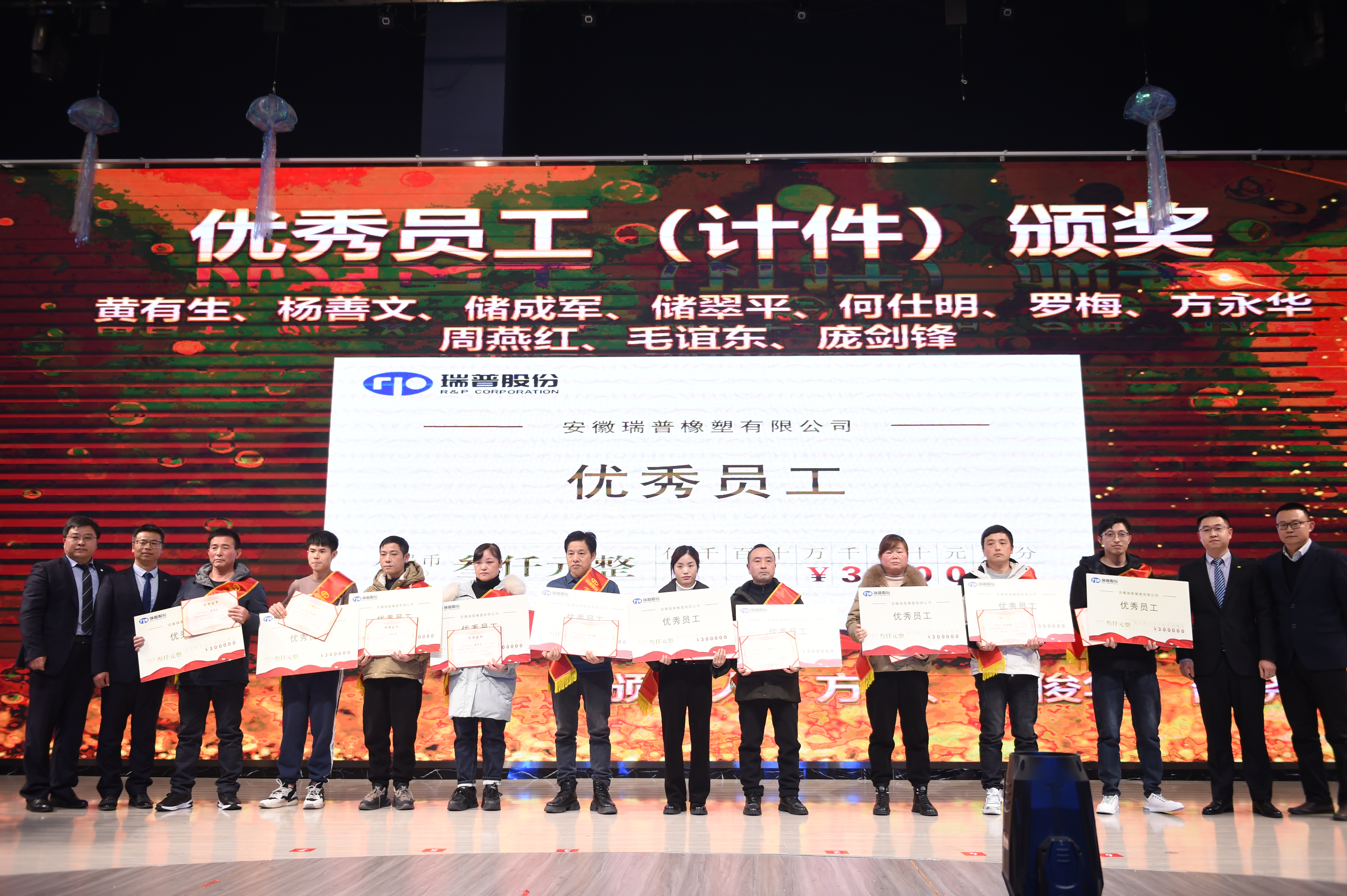 龍騰虎躍慶盛事,馬到功成事業興,安徽瑞普橡塑有限公司年會由國際貿易部經理和人力資源部經理擔任主持人,瑞普2024年會在倆位主持人簡單而又大氣的開場白下正式拉開序幕。